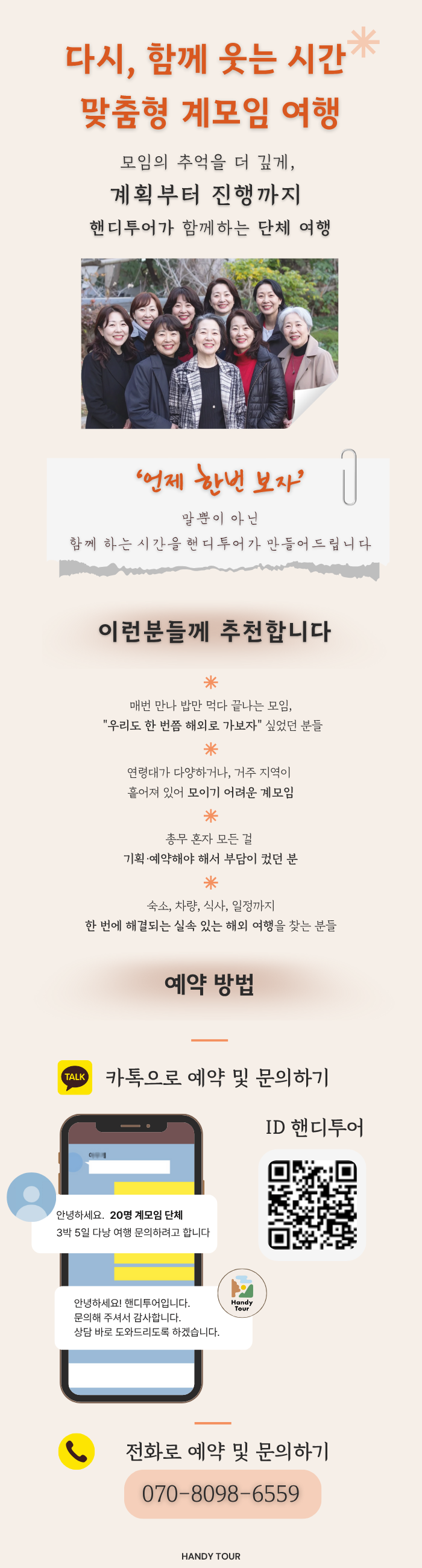 핸디투어가 정확하고 편안한 계모임 여행을 설계해드리기 위해