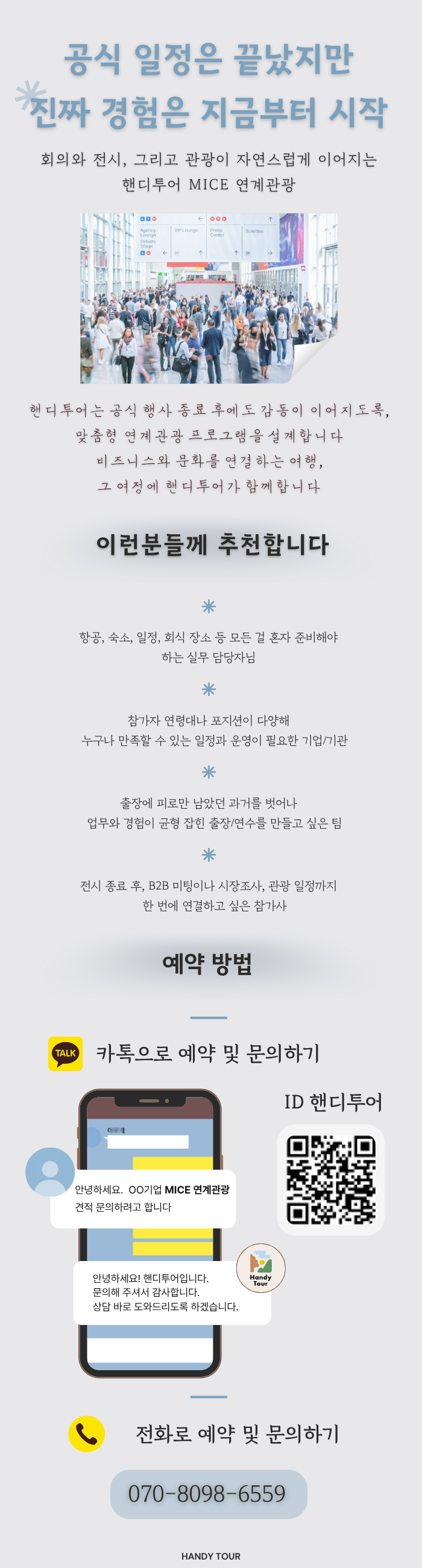 핸디투어가 처음부터 끝까지 안전하고 편안하게 책임지겠습니다.