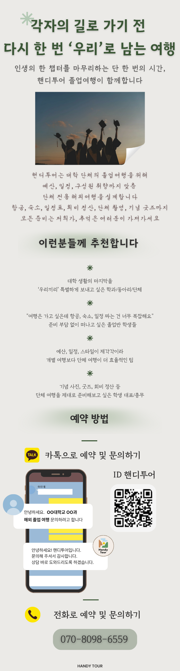 핸디투어가 처음부터 끝까지 안전하고 편안하게 책임지겠습니다.