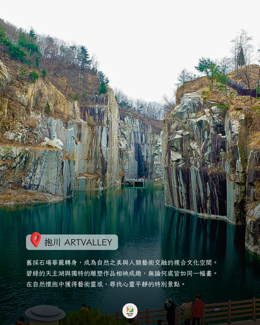 抱川一日遊將帶您走訪由廢棄採石場蛻變而成的「抱川藝術谷」,