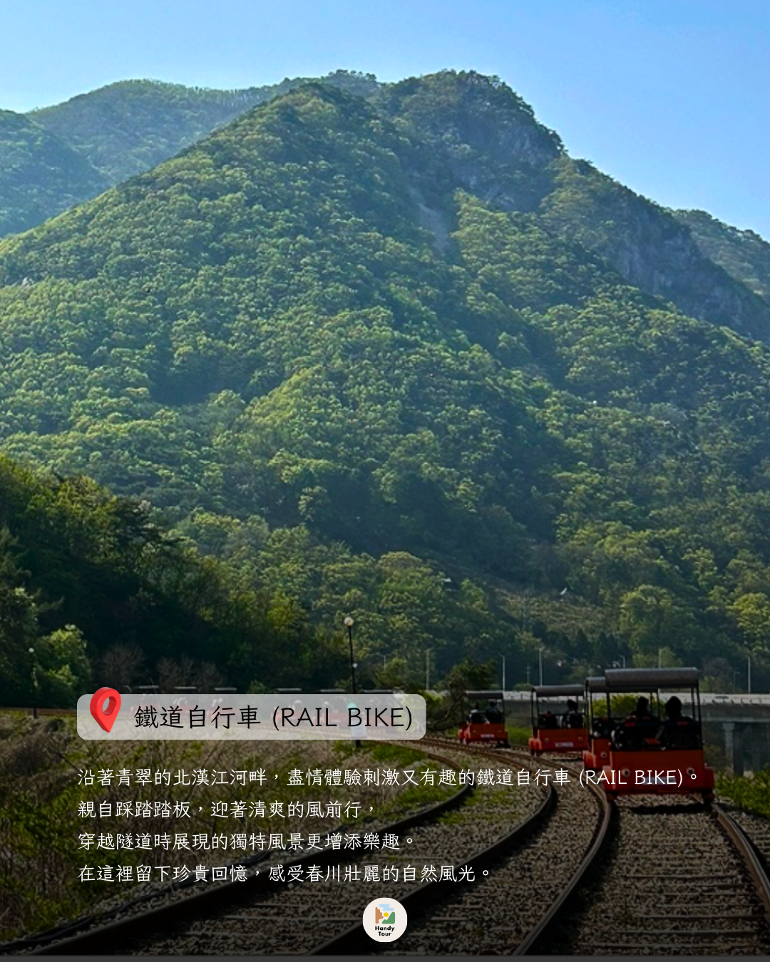 ✔️ 體驗鐵道自行車的刺激 × 欣賞北漢江的美景 × 歐洲浪漫氛圍