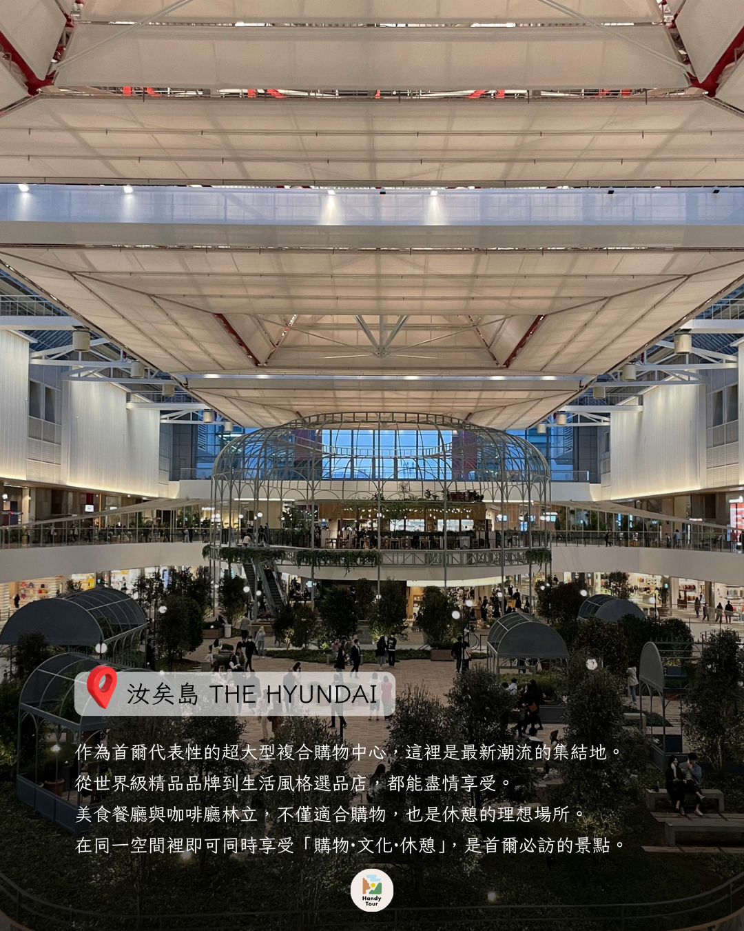 下午前往首爾最大規模的複合式購物中心「汝矣島 The Hyundai」,盡情購物並探索各式美食。